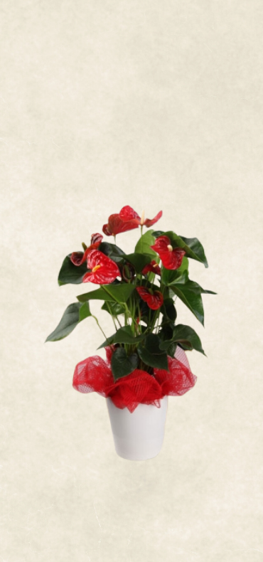 Özenle seçilmiş antoryum çiçeği ,  dekoratif  ve  zarif süslemelerle saksı için hazırlanır. Özel günler, kutlamalar ve anlamlı anlar için etkileyici ve özgün bir tercih sunar.