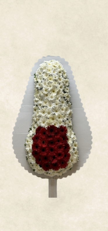 Özenle seçilmiş kırmızı ve beyaz çiçekler , dekoratif ve zarif süslemelerle çelenk için hazırlanır. Özel günler, kutlamalar ve anlamlı anlar için etkileyici ve özgün bir tercih sunar.