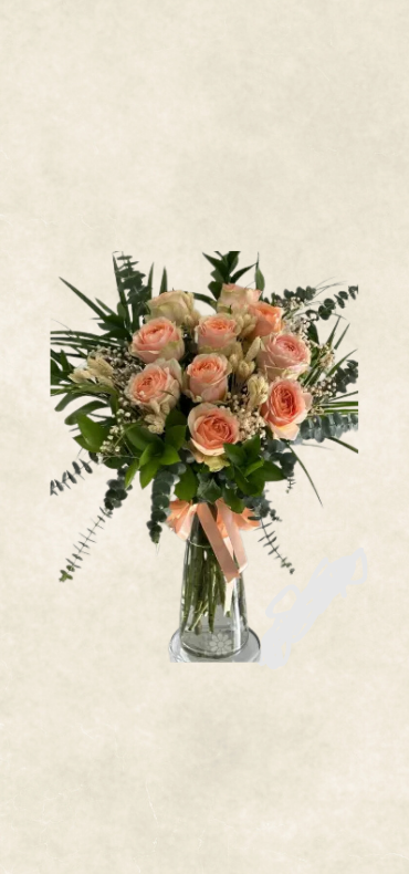 Bu aranjman, özenle seçilmiş ithal somon renkli güller ve dekoratif süslemelerle hazırlanmıştır. Sevdiklerinize zarif ve göz alıcı bir hediye sunmak için ideal.