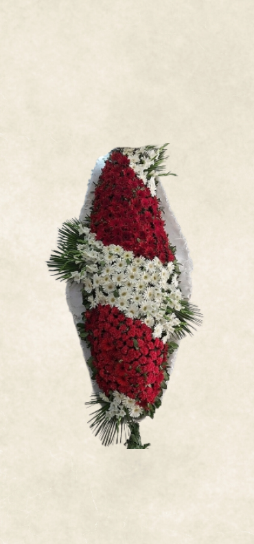 Özenle seçilmiş kırmızı beyaz çiçekler , dekoratif ve zarif süslemelerle çelenk için hazırlanır. Özel günler, kutlamalar ve anlamlı anlar için etkileyici ve özgün bir tercih sunar.
