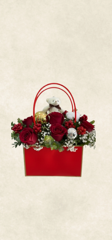 kırmızı Çantada yılbaşı ÇiçeğiKırmızı Çantada Yılbaşı Çiçeği ve Ayıcık