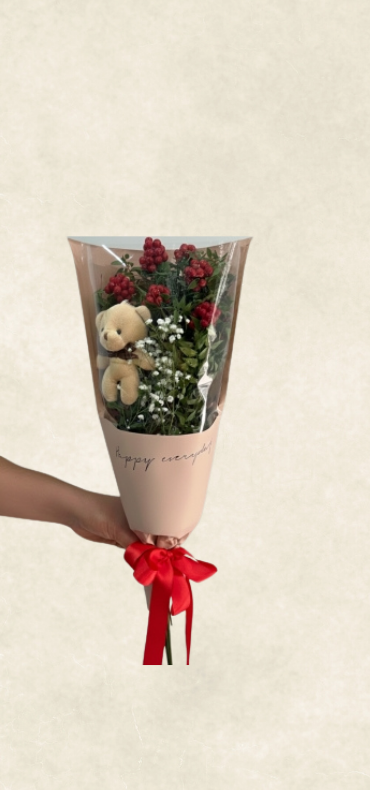 Özenle seçilmiş kokinalar ve ayıcık, buket halinde dekoratif ve zarif süslemelerle hazırlanır. Özel günler, kutlamalar ve anlamlı anlar için etkileyici ve özgün bir tercih sunar.
