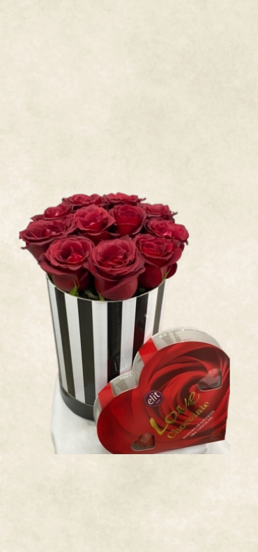 Özenle hazırlanmış kutu içerisinde 11 adet kırmızı gül ve kalpli çikolata ile sevdiklerinize hem görsel hem de tatlı bir sürpriz sunabilirsiniz.