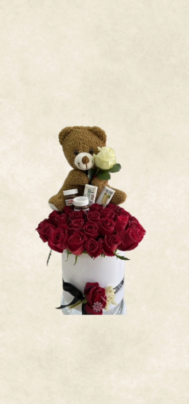 Özenle seçilmiş kırmızı gül , ayıcık ve çikolata , beyaz kutu içinde şık bir ambalaj ve zarif süslemelerle hazırlanır. Özel günler, kutlamalar ve anlamlı anlar için etkileyici ve özgün bir tercih sunar.