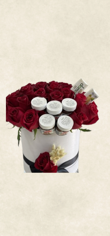 Özenle seçilmiş kırmızı güller çikolata ve nutellalar , kutu halinde şık bir ambalaj ve zarif süslemelerle hazırlanır. Özel günler, kutlamalar ve anlamlı anlar için etkileyici ve özgün bir tercih sunar.