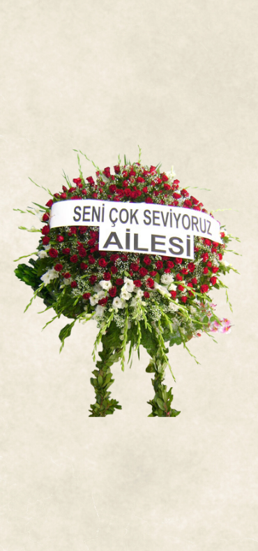 Özenle seçilmiş kırmızı çiçekler , dekoratif ve zarif süslemelerle çelenk için hazırlanır. Özel günler, kutlamalar ve anlamlı anlar için etkileyici ve özgün bir tercih sunar.