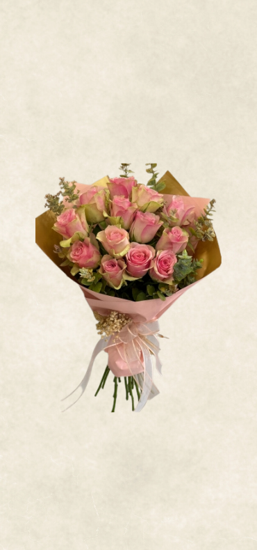 Zarif pembe tonlarında çiçeklerden oluşan Pink Athena Royal buket, şık ambalaj ve dekoratif süslemelerle öne çıkar.