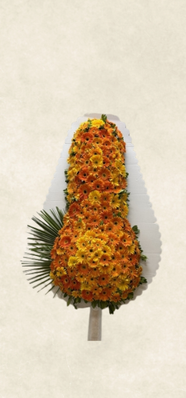 Özenle seçilmiş turuncu çiçekler , dekoratif ve zarif süslemelerle çelenk için hazırlanır. Özel günler, kutlamalar ve anlamlı anlar için etkileyici ve özgün bir tercih sunar.