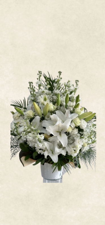 Özenle seçilmiş beyaz çiçekler, vazo içerisinde şık bir ambalaj ve zarif süslemelerle hazırlanır. Özel günler, kutlamalar ve anlamlı anlar için etkileyici ve özgün bir tercih sunar.