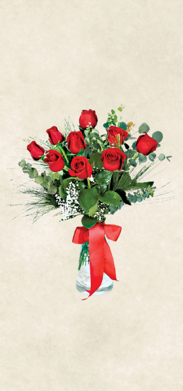 Yaklaşık 30 – 35 cm yüksekliğinde cam vazo içerisinde 9 adet taze kırmızı gül ve dekoratif yeşillikler yer almaktadır. Şıklığı ve sadeliği bir arada sunar.