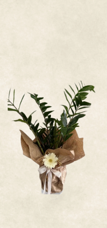 Özenle seçilmiş zamia çiçeği , dekoratif ve zarif süslemelerle saksı için hazırlanır. Özel günler, kutlamalar ve anlamlı anlar için etkileyici ve özgün bir tercih sunar.